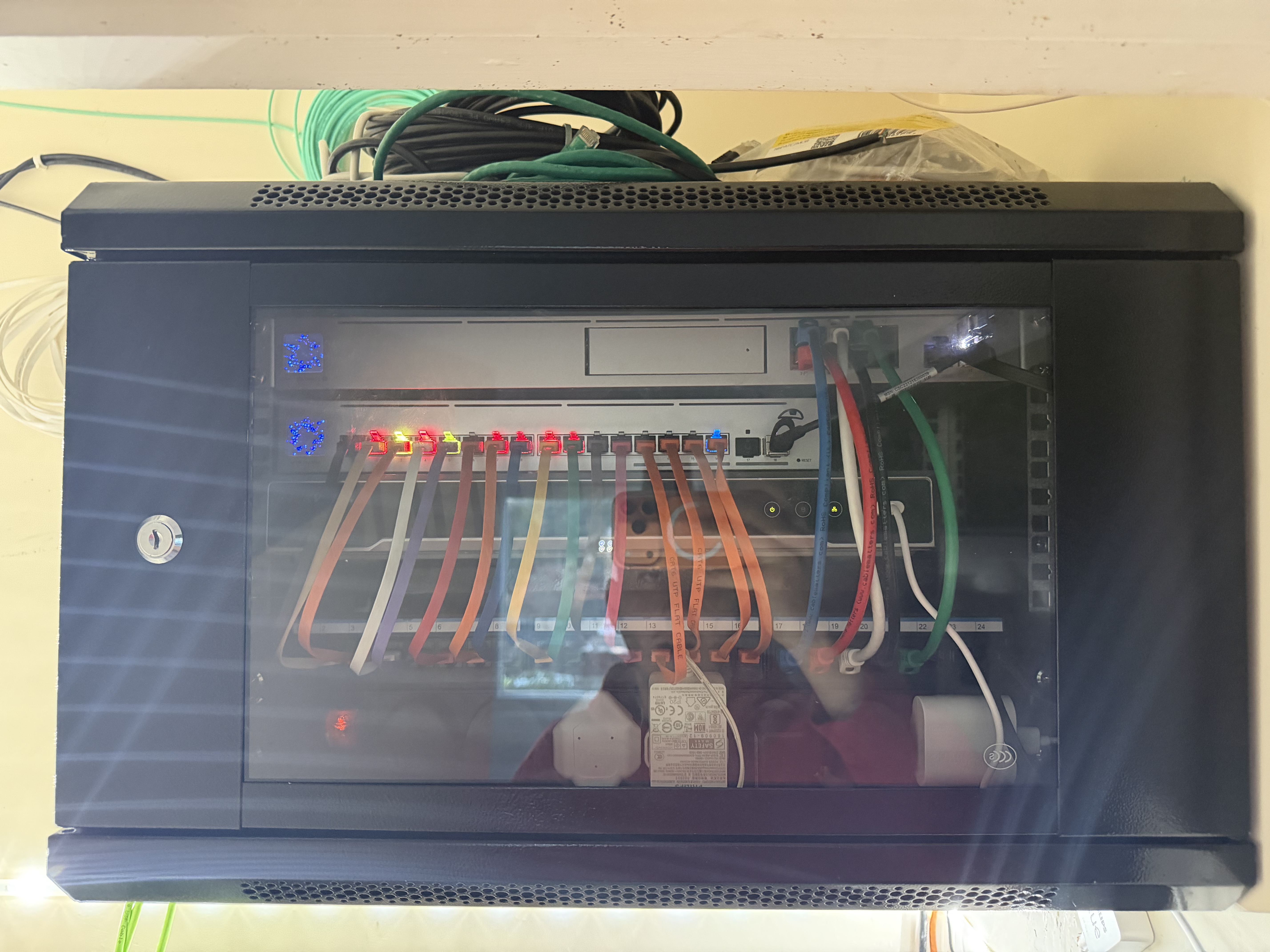 Home lab utilising 5Gbps internet, using Unifi equipment to route to over 18 wired clients and 5 WiFi clients, including smart home technology.